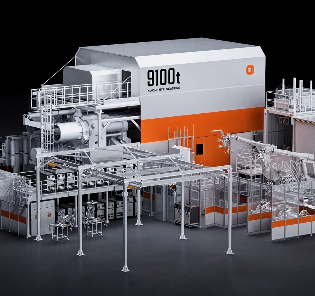 自主设计整套大压铸流水线,全套 60 个设备,精密控制 433 个工艺参数,单台压铸机重达 718t,锁模力高达